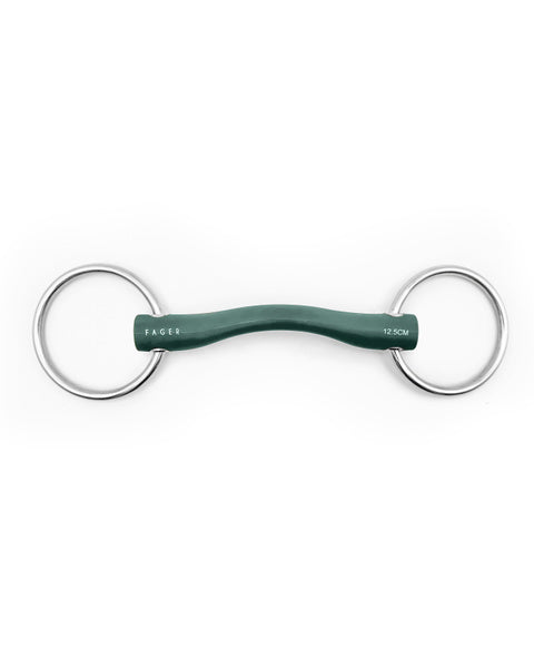 This mouthpiece is slightly thinner in the middle, allowing for a gentler fit on the tongue without excessive pressure on the bars or palate. The shape, combined with the gentle material, makes this bit a suitable option for horses with sensitive bars and palate who can be worried in the mouth, and throw their head up when you take the reins. This mouthpiece is suitable for a wide range of horses.
